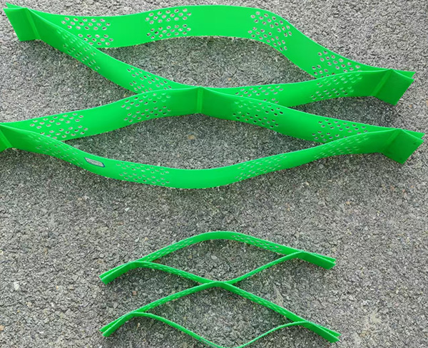 3.土工格室运输便捷,因其可伸缩的特点,运输时可缩叠起来,施工时则可张拉成网状,填入泥土、碎石、混凝土等物料。